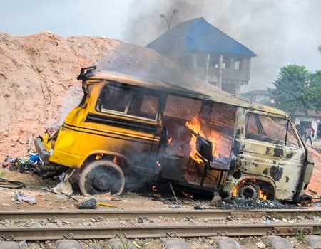 He said some youths set the bus ablaze in anger while the injured were taken to a nearby hospital.