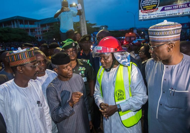 Acting President Yemi Osinbajo visits scene of collapsed building in Abuja (Photos)