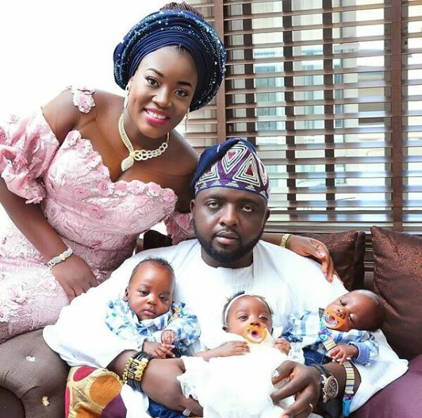 Taiye Feyisayo Adedeji shared photos of her set of triplet, two boys and a girl which she welcomed with her husband after they have waited for six years.
