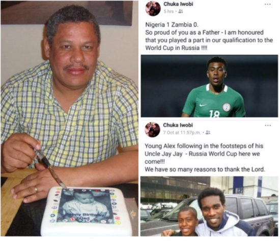 His father Chuka Iwobi, took to his Facebook page yesterday after Nigeria qualified for the Russia 2018 World Cup to celebrate his son who scored the lone goal that gave Nigeria victory.
