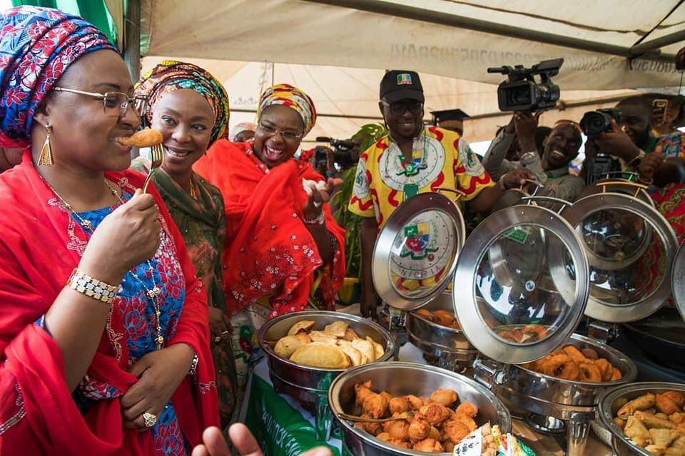 The wife of the number one citizen of Nigeria and the first lady Aisha Buhari was sighted having a taste of puff-puff in the public during an empowerment programme held in Kwara State.