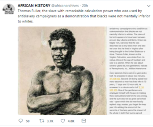 With this rare gift, Thomas Fuller was used by antislavery campaigners as a demonstration that blacks were not mentally inferior to whites