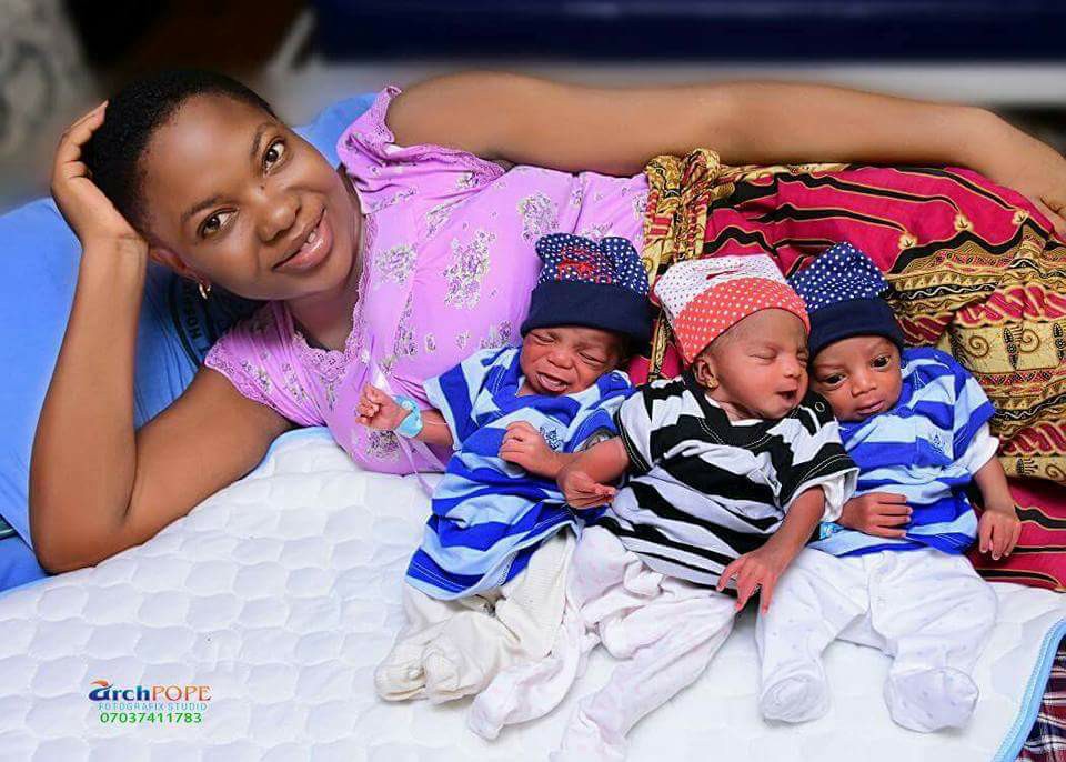 A woman who is a twin, who had earlier shared beautiful pictures of her big baby bump, has been successfully delivered of triplets, two boys and a girl.