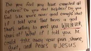 “Do you feel you have exhausted all options? Do you feel helpless? Do you feel like you are never good enough? What if I told you that there’s a God