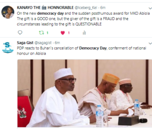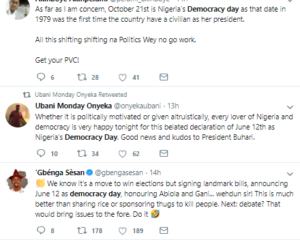 Nigerians are reacting rapidly to President Muhammadu Buhari’s declaration of June 12 as the new Democracy day for the country.