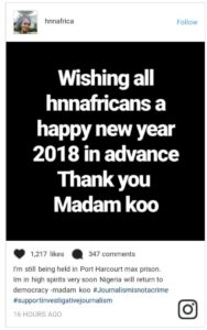 According to her, “I’m still being held in Port Harcourt max prison.