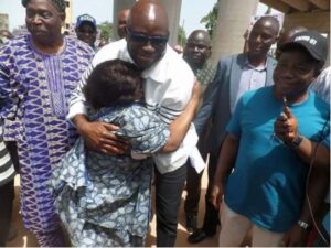 Governor Ayodele Fayose alongside civil servants and labour leaders was pictured welcoming the State Accountant General, and the Commissioner for Finance, Chief Toyin Ojo back to Ado-Ekiti after 2 weeks incarceration at the EFCC headquarters.