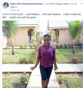 A 23-year-old final year student of Delta State University (DELSU), Isoken Kristal Brighter has reportedly died of excessive blood loss.