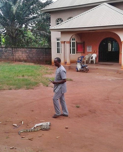 According to his Facebook post he claimed two giant snakes started fighting in front of the church just immediately after a hot prayer session