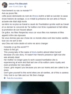 An Ivorian lady, Iness Boitrin, has suffered depression and almost killed herself after a sex tape which she was featured leaked online.