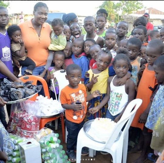 The Nigerian superstar and mother of two in her latest Instagram post was pictured amidst motherless children carrying two of them in her hands and several others agog at sighting her.
