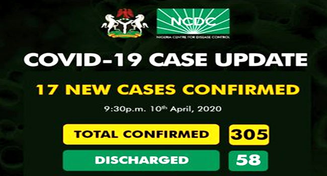 The Nigeria Centre for Disease Control (NCDC) has confirmed 17 new cases of coronavirus in the country, bringing the total number of COVID-19 infections recorded so far to 305.