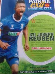 We write to appeal to your Excellency for financial assistance to enable his family (wife and daughter) find there fit out of the hard conditions the death of there father IZU JOSEPH the Nigerian footballer who was murdered by men of the Nigerian army in Okarki town in ahoada west. Your Excellency sir his daughter who is a minor age 9yrs old is already having setback in her education and her mother relocating to the village to try to make a living.
