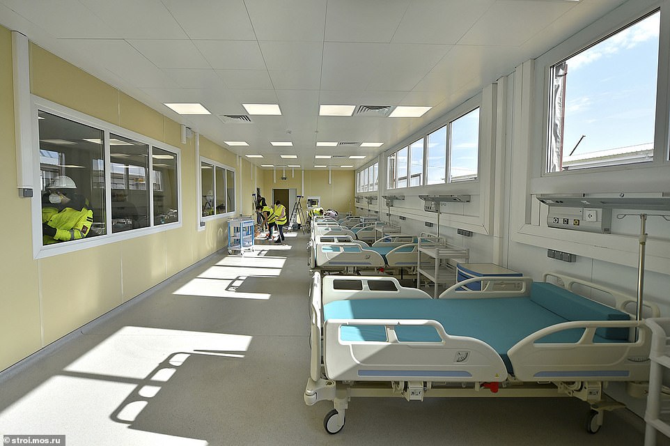 These first pictures show the wards at the new £92million clinic in Moscow which in recent days has seen 10,000-plus construction workers deployed round the clock.