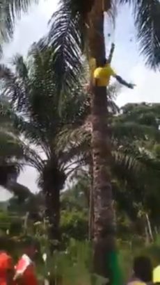 In what looked like a failed power test, a man has fallen from a Palm Tree while trying to make a display to onlookers at a festival in Enugu State, Nigeria.
