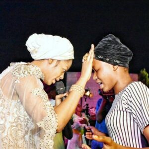 The new wife of the Ooni of Ife, Queen Naomi Oluwaseyi looked radiant and spiritually alerted as she prayed for members at the Hossana Night held on Friday Night by Herald Ministry.