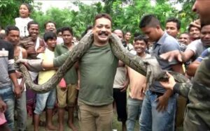 Sanjoy began to panic as the python’s grip tightened, threatening to cut off circulation to his head.