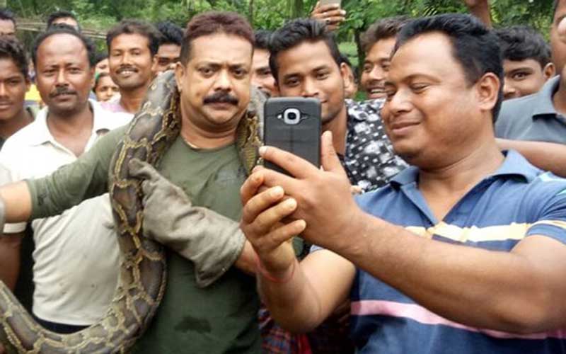Sanjoy Dutta posed for the camera with the snake draped across his shoulder, it began tightening its grip, attempting to strangle him in front of a horrified crowd.