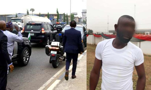 Governor Ambode who was returning from Abuja where he had attended an event, apprehended a soldier driving against traffic in Ikeja today.