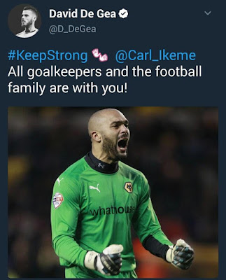 De Gea sent the message through his personal Twitter page.Ikeme is set to start chemotography,a treatment for the disease.