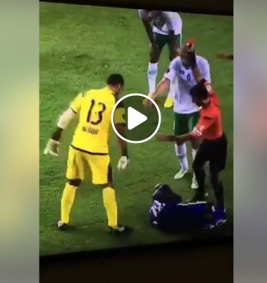 This is actually a football match! It is a professional football match, though it looks like a movie. The goalkeeper beats up the player who dribbled him as if the player were his younger brother. Maybe the goalkeeper is beating up the player because he didn’t show any form of respect to him (Lol)… This is actually funny but it is happening even in the 21st century!!!