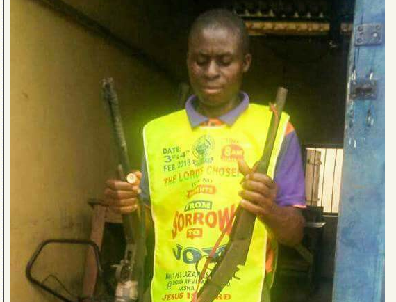 A Pastor from the Lord’s Chosen Charismatic Revival Movement was said to have forcefully collected two guns from armed robbers that came to rob in their compound on the 21st day of February 2018 in Rivers state.