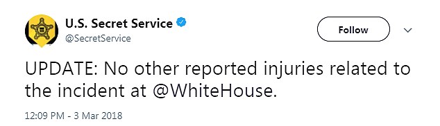 ‘No other reported injuries related to the incident,’ the Secret Service tweeted.