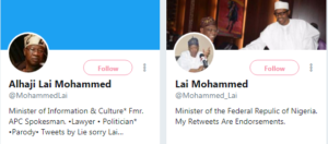 The Minister recalled how one of the parody Twitter accounts @MohammedLai was used to circulate a fake report that he sharply criticised Senator Dino Melaye for attending the Notting Hill Carnival in the United Kingdom.