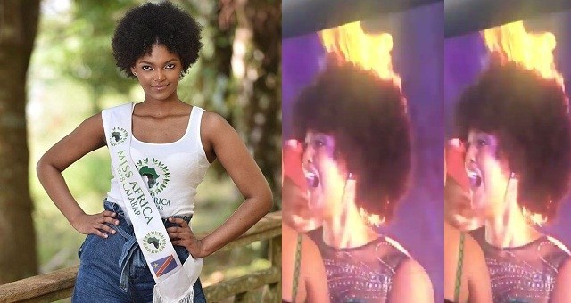 Dorcas Kasinde, Miss Congo caught fire with her hair while she was celebrating her victory at the 2018 Miss Africa which was held in Calabar, Cross Rivers state.