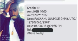 A Nigerian man identified simply as Jimi has reportedly received the sum of 10 Naira as a credit alert from a good Samaritan on twitter