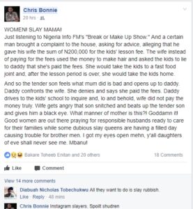 In the early hours of Friday, a facebook user identified as Chris Bonnie recount the story he listened to on a radio program on Nigeria Info 99.3. His facebook post reads.