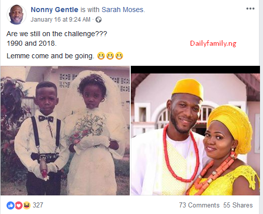 Nonny Gentle recently took to Facebook to reveal that he was once on a wedding train as a ring bearer and his wife who was the little bride in 1990.