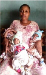Mrs. Ugonma Edobor gave birth to set of triplet December 29th, 2017. It is sad to note that her husband Mr. Pius Edobor from Uromi absconded to unknown destination leaving the jobless poor woman to take care of the triplet and her other two children in the midst of economic hardship conspicuous.